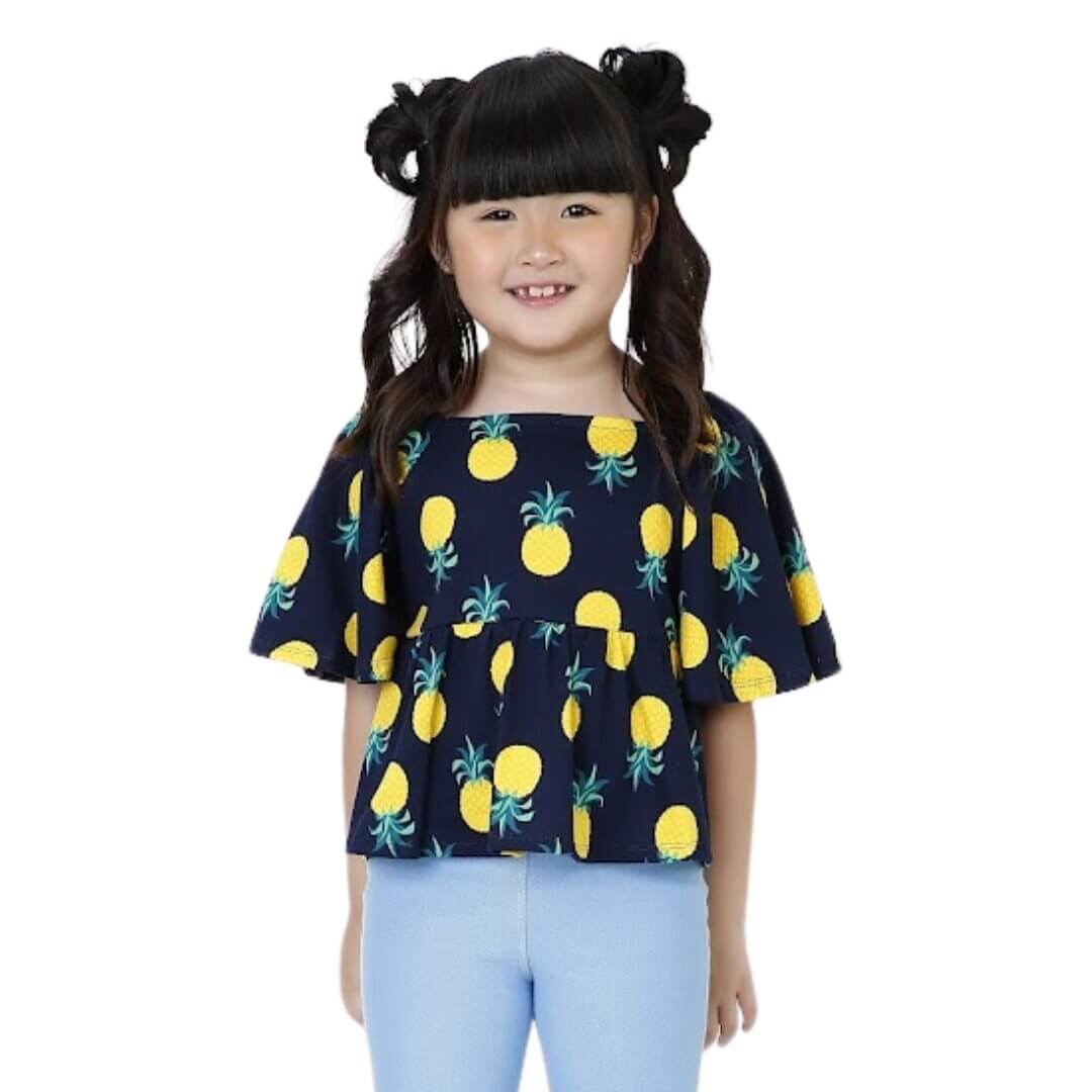 Blusa Infantil Juvenil Manga Sino Algodão Estampa Abacaxis
