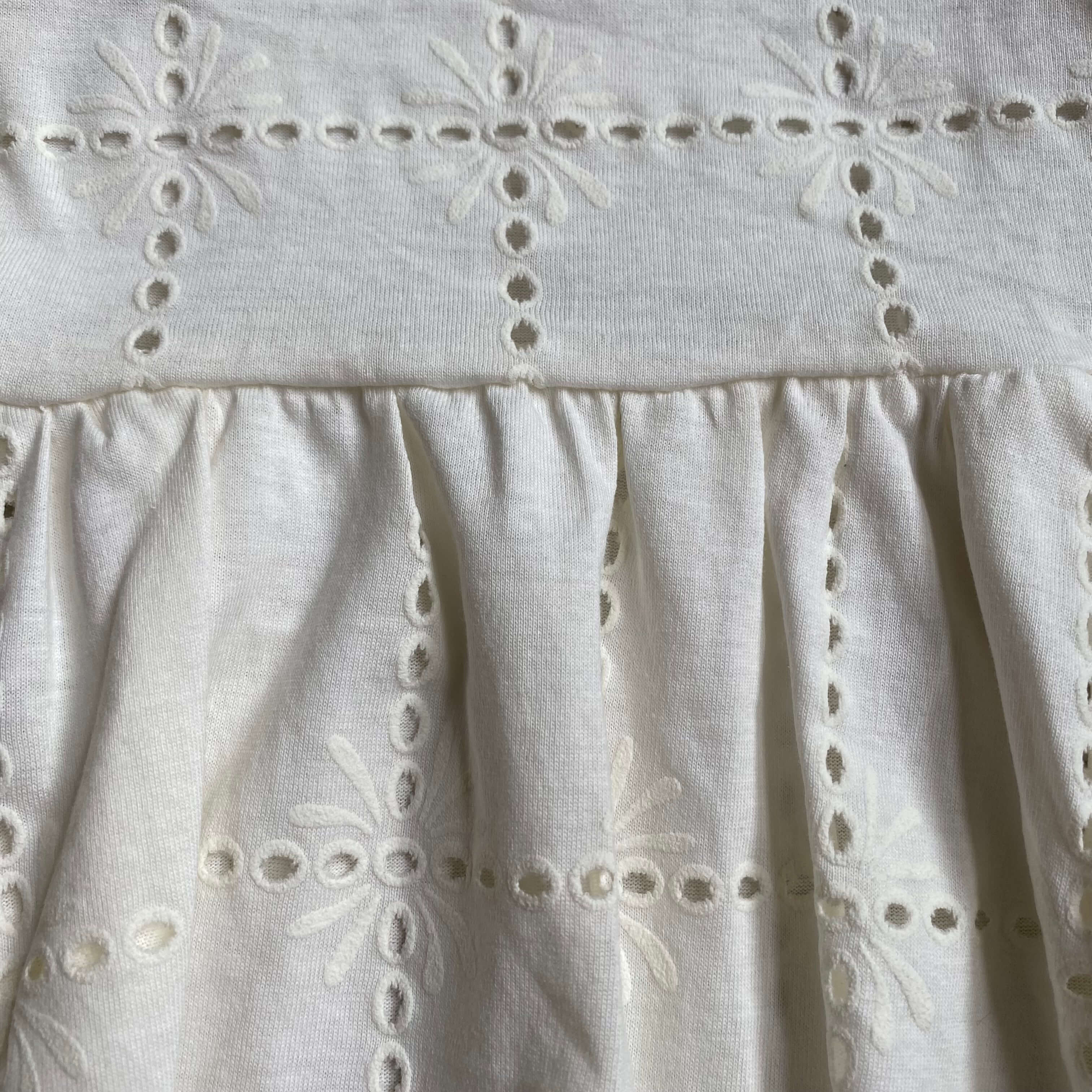 Tamanho 4 anos: Altura 34,5cm (do ombro até a barra da blusa) e Peito 29,5cm (costura debaixo da axila lado a lado sem esticar).