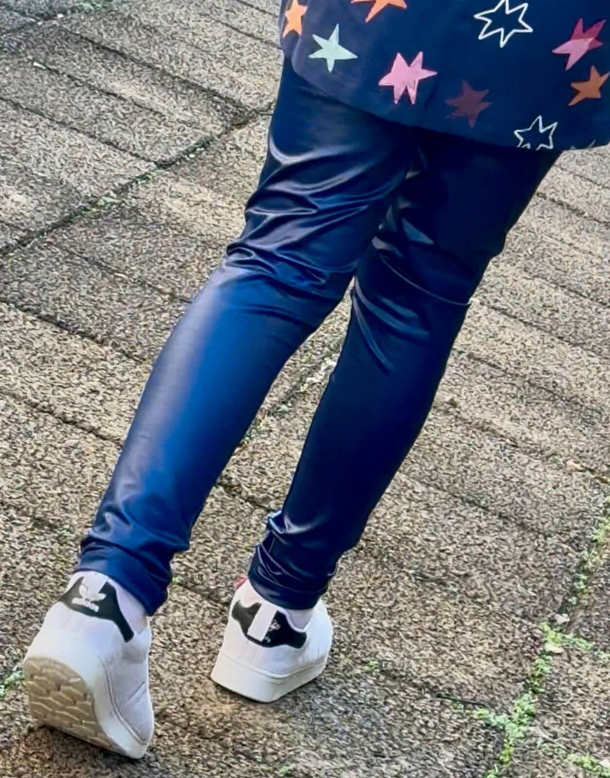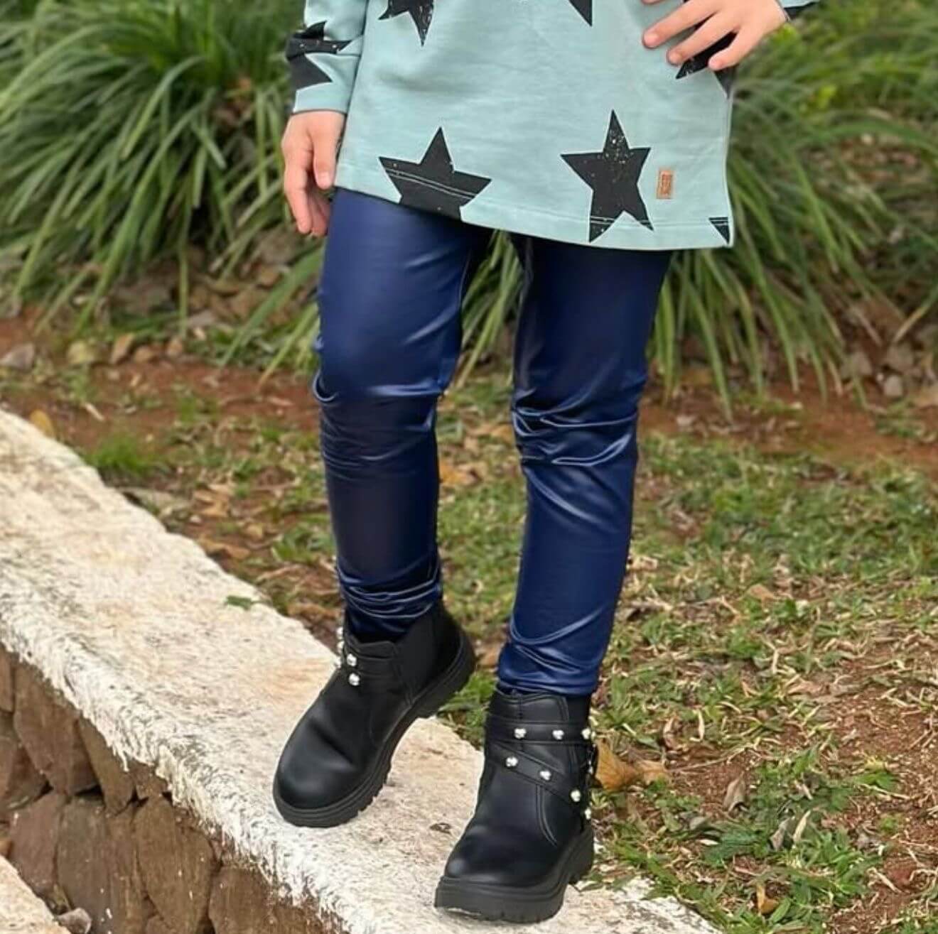 CALÇA LEGGING FORRADA INFANTIL CIRRÊ METALIZADA AZUL MARINHO