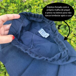 I. Cós de elástico de 3cm costurado por dentro que não “torce” conforme o uso da criança ou da lavagem
