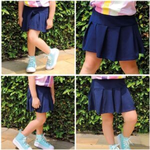 I. Tanto a saia quanto short feitos em algodão, malhas que “transpiram” e não esquentam a criança