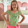 Essa estampa é feita na meia malha (malha de camiseta, sabe?!). Toda em algodão premium o que faz com que a blusinha, além de fresquinha, traga todo o conforto do toque do algodão diretamente com a pele.