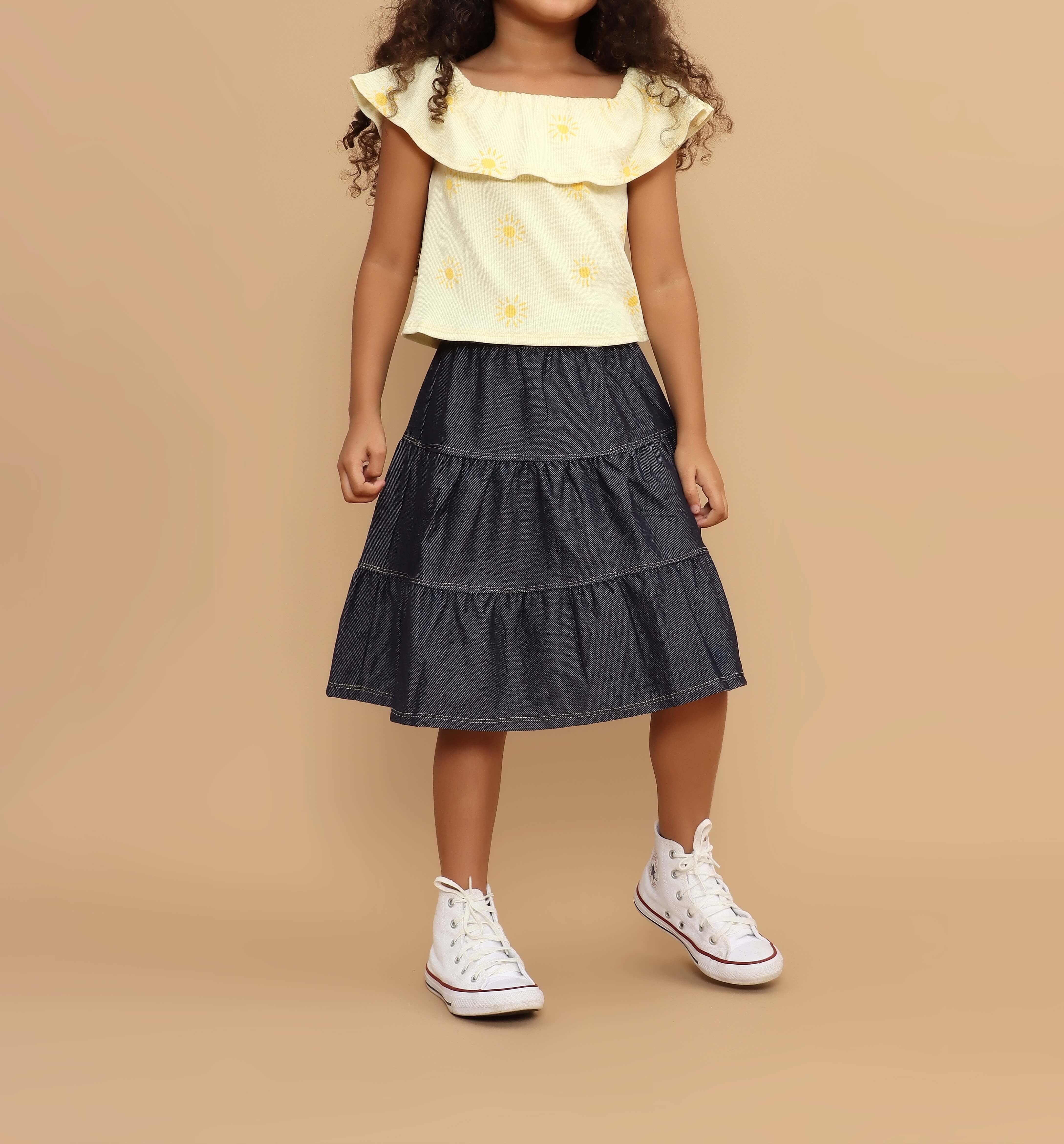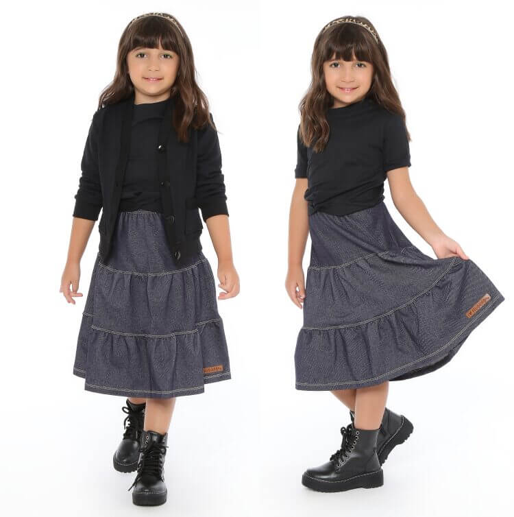 Saia Midi Infantil Três Marias Fake Jeans Azul Marinho