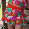 SAIA MIDI INFANTIL VERDE NATALINA ALGODÃO MAQUINETADO