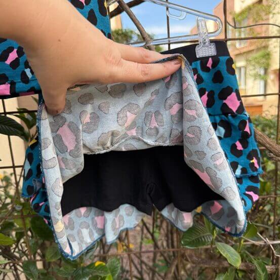 Lembre-se que pode haver alteração de até 1cm nas medidas uma vez que as saias shorts são costuradas manualmente uma a uma.