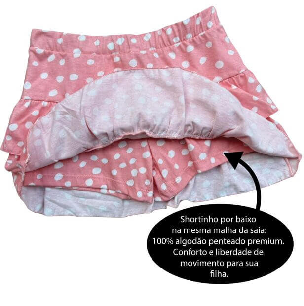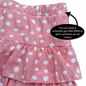 SAIA SHORT BABADO ALGODÃO INFANTIL JUVENIL PINGOS CORAL