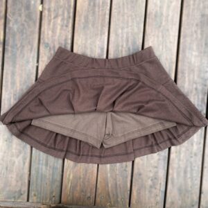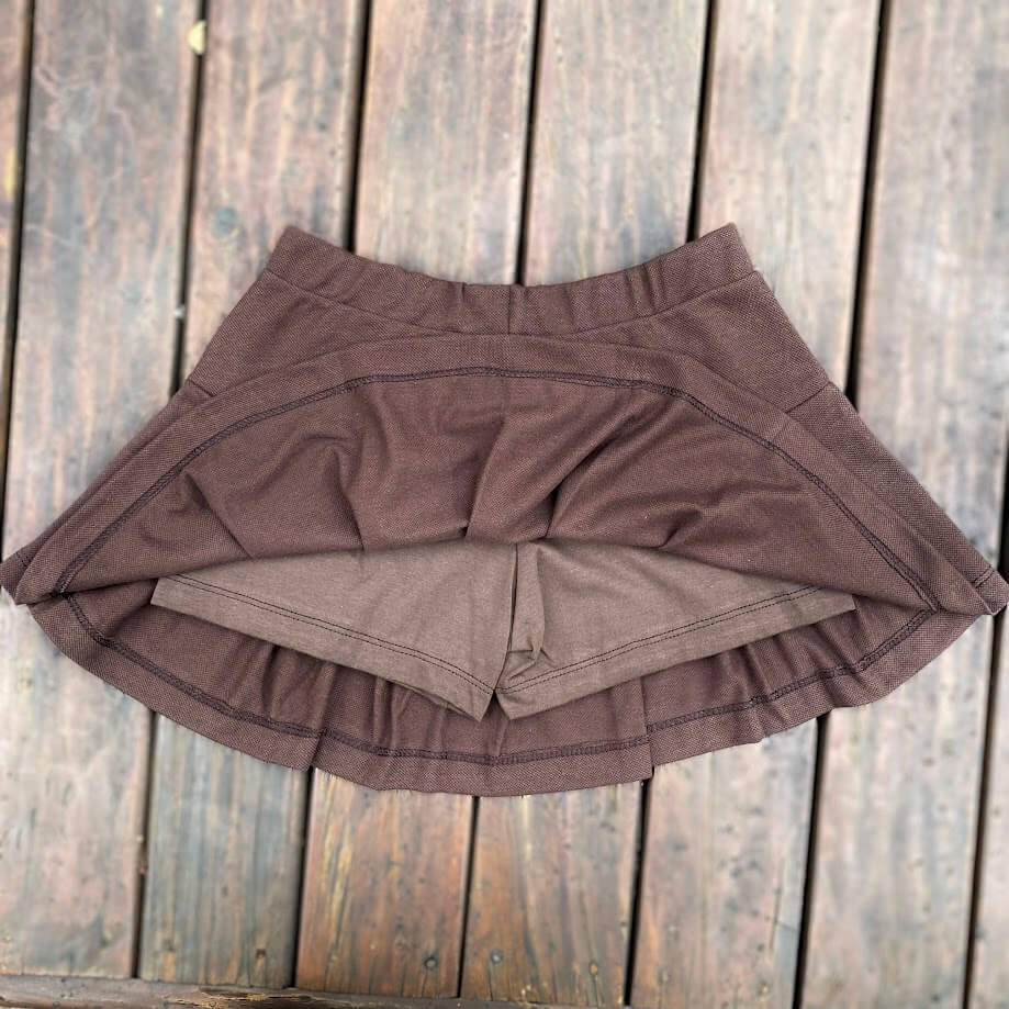 I. Short costurado por baixo da saia feito em 100% algodão penteado, sempre seguindo a cor da saia. Conforto e liberdade de movimento