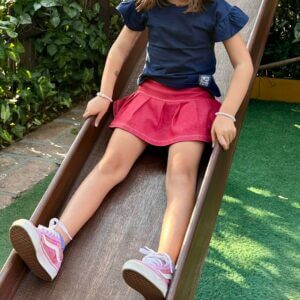 I. Tanto a saia quanto short feitos em algodão, malhas que “transpiram” e não esquentam a criança