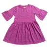 Tamanho 4 anos: Peito 30,5cm, Altura 55,5cm (do ombro até a barra do vestido) e manga 11,5cm (sem esticar a malha).